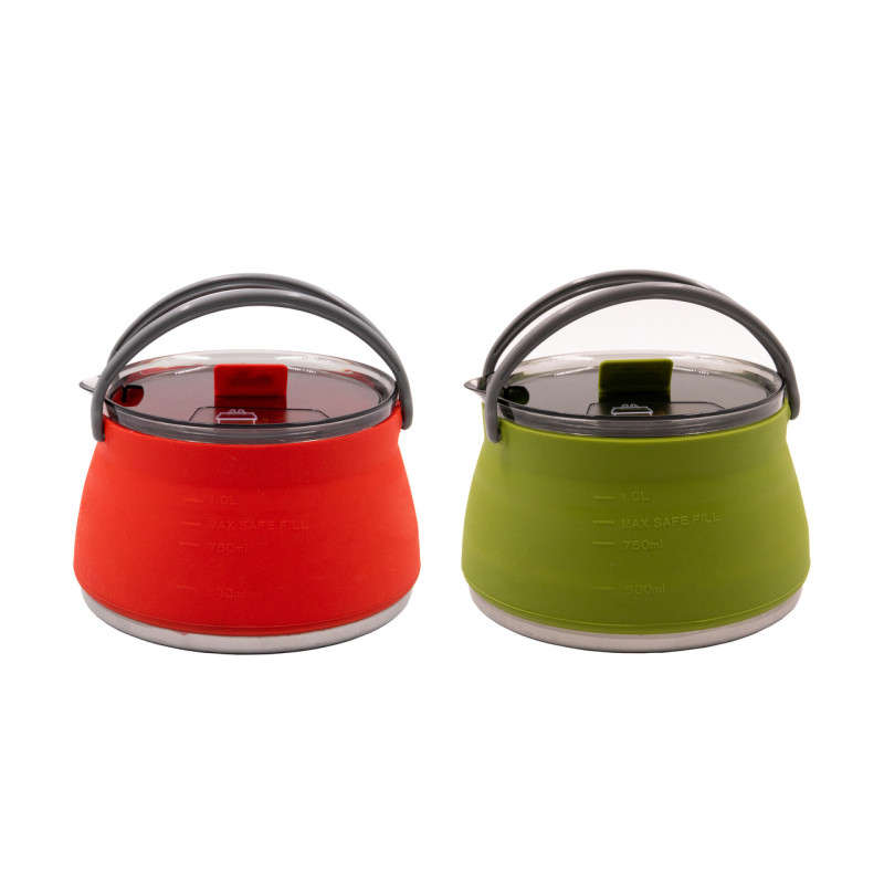 Легкий компактный складной туристический чайник со стенками из термостойкого пищевого силикона и дном из нержавеющей стали.