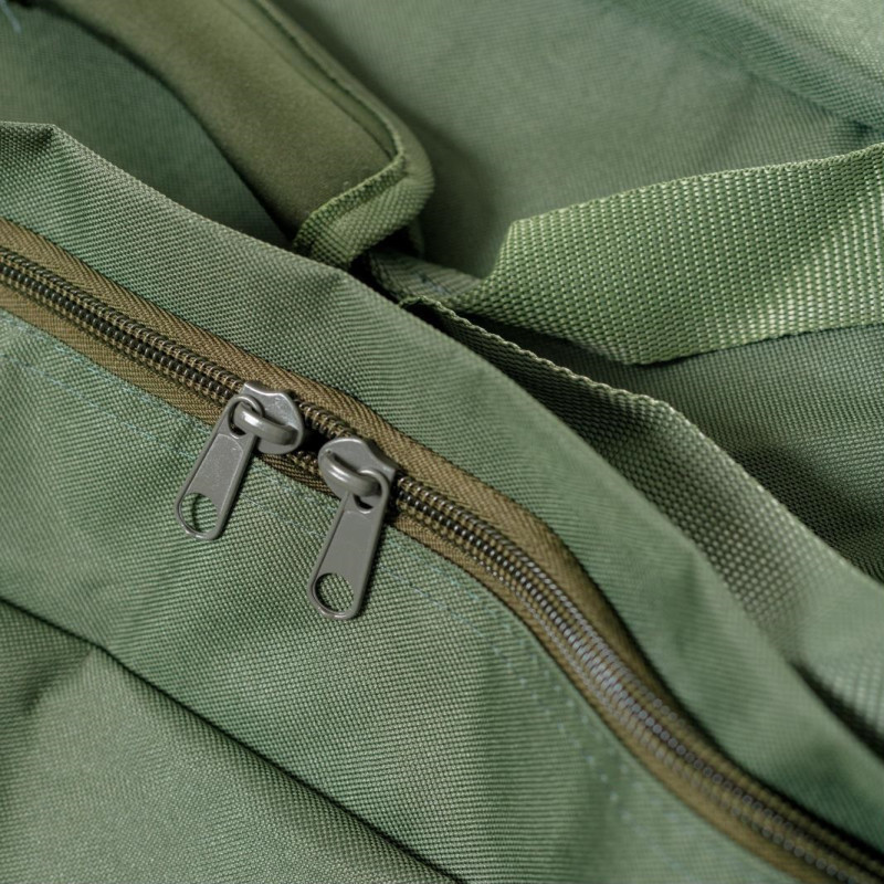 Сумка для зручності відкривається зверху майже на половину, що полегшує процес складання. Замки потужні і надійні – Crash Zip, з двома блискавками. Закривається додатково тканиною, для запобігання потрапляння бруду чи води в блискавку. Тканина має вологостійке просочення, та стійка до забруднення, в середині додаткова підкладка. По всій довжині чохла вшита стропа для посилення навантаження на тканину, переходить в ручки які між собою фіксуються на липучці.