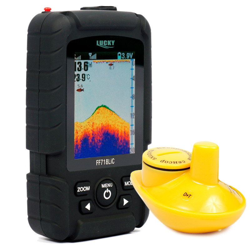 Хорошо видны бровки. Если привязать беспроводной датчик к лодке, то он будет также эффективен для замера глубин, рельефа и поиска рыбы с плавсредства. Эхолот Fish finder легко использовать для зимней рыбалки. Из-за отсутствия проводов, которые на морозе имеют свойство ломаться. Беспроводной эхолот начинает работать когда датчик оказывается в воде, так как на его нижней части есть 2 контакта, которые при попадании в воду образуют электрическую цепь и fishfinder начинает работать.