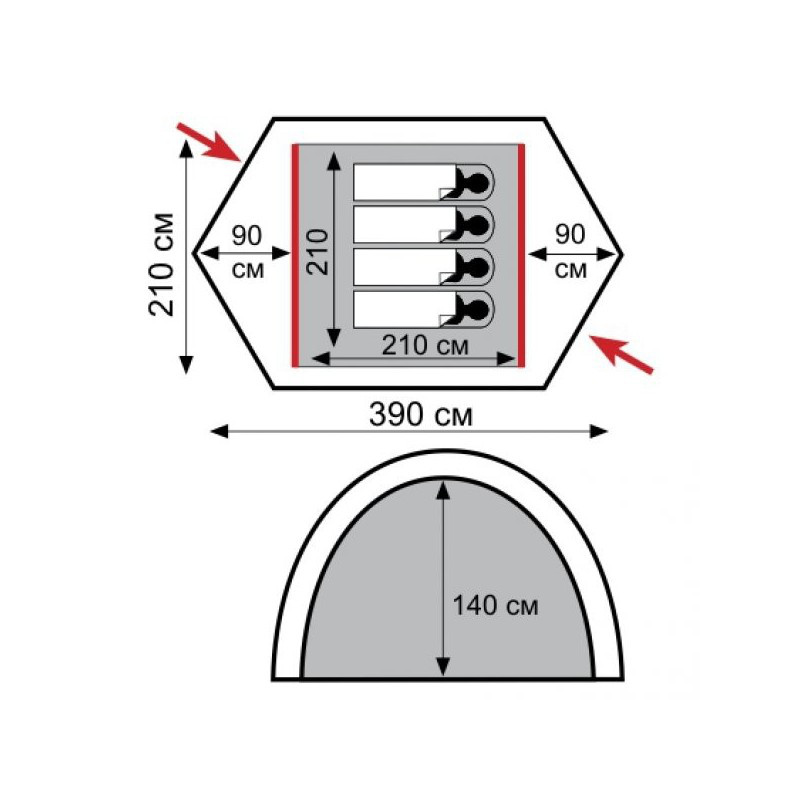 Два вентиляционных клапана с возможностью открытия изнутри палатки