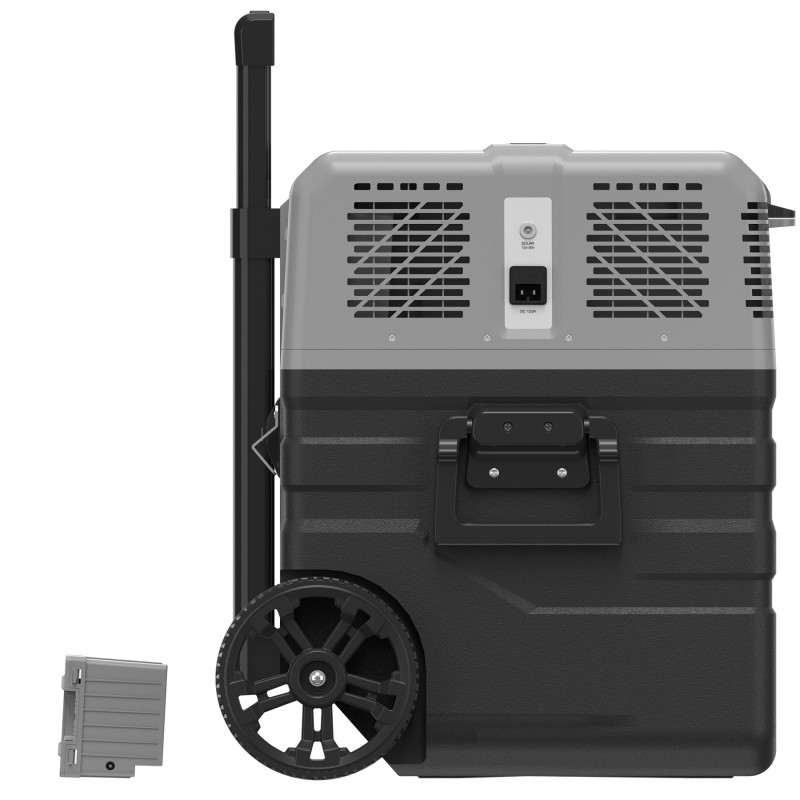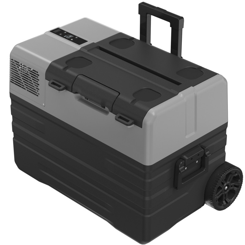 Холодильник имеет устойчивые колеса и телескопическую ручку для легкой транспортировки вне автомобиля и прочные ручки по бокам для быстрого переноса. Корпус оснащен контрастным LCD-дисплеем и замком крышки (защита от случайного открывания). Диапазон температур в камере от -20 °C до + 20 °C.