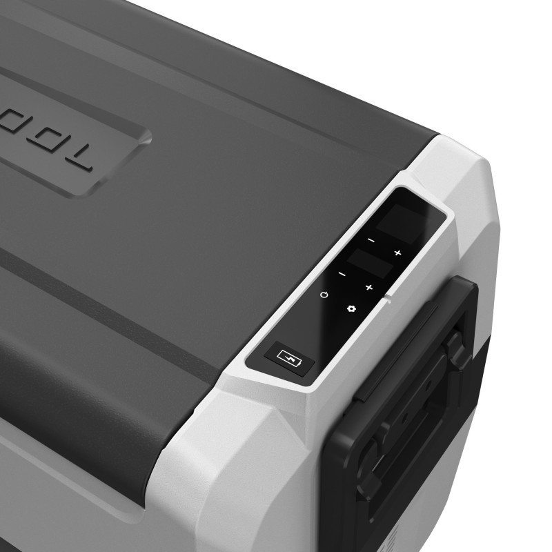 Температуру в камерах отражает LED дисплей на корпусе холодильника. Им же, или через приложение на вашем смартфоне, можно управлять температурой. Также на дисплее есть кнопки питания и индикатор заряда источника питания. Внизу экрана есть USB-порт для подзарядки гаджетов.