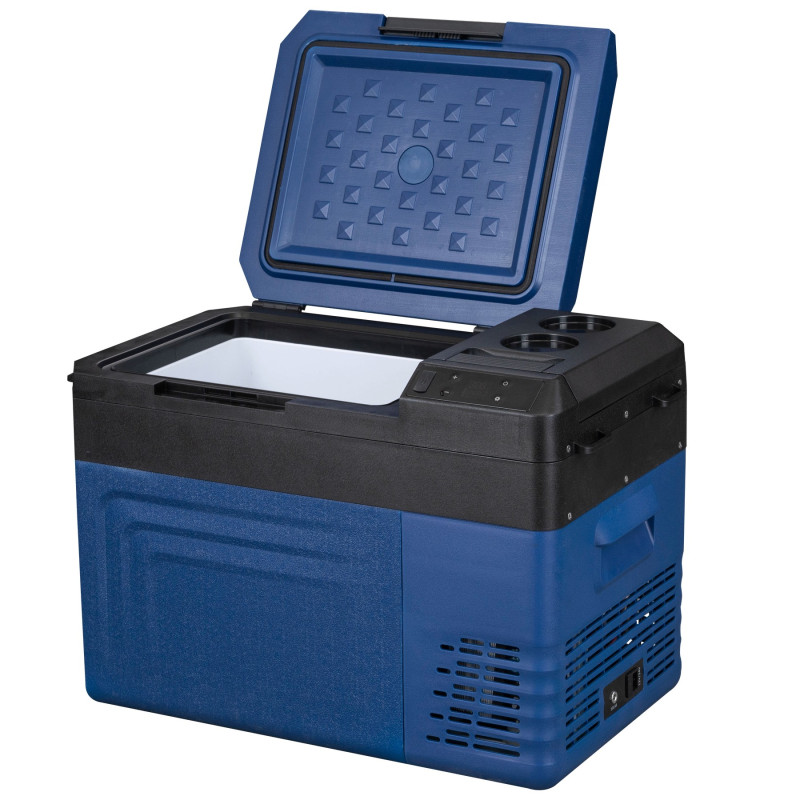Холодильник имеет ударопрочный износостойкий корпус. Оснащен контрастным LCD-дисплеем и замком крышки (защита от случайного открывания). Диапазон температур в камере от -20 °C до + 20 °C.
