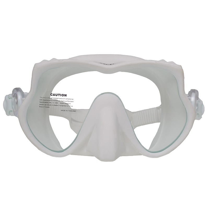 С появлением маски Marlin Frameless Excel White (Марлин Фреймлесс эксель вайт) исчезла проблема выбора между большим обзором маски и маленьким подмасочным пространством. Отличное сочетание широчайшего обзора, благодаря моностеклу увеличенного размера, минимального подмасочного пространства, за счет применения технологии Frameless, делают эту маску отличным выбором начинающих и опытных дайверов.
