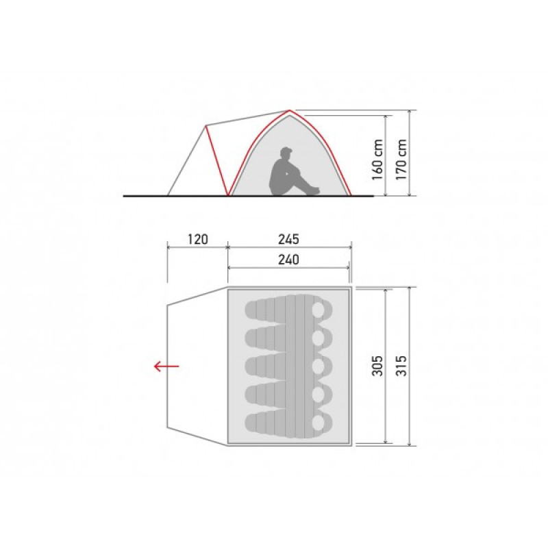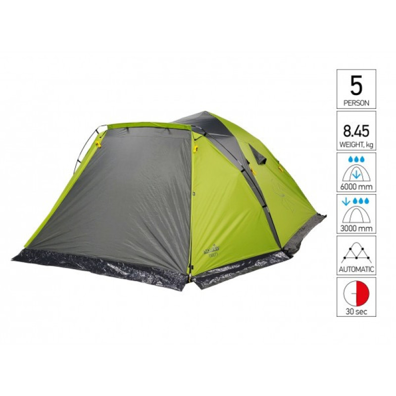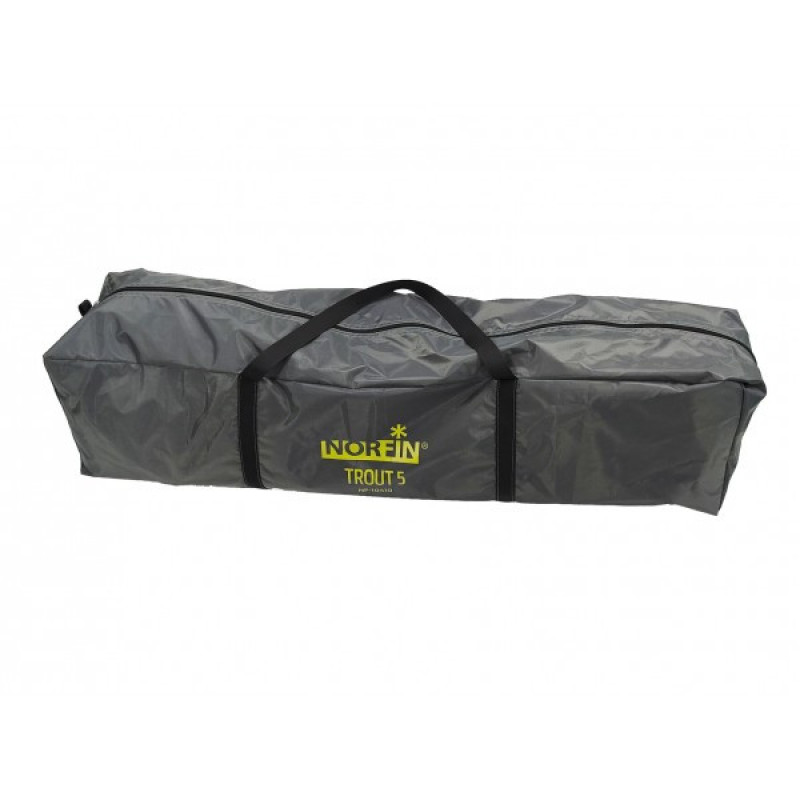 5-ти местная кемпинговая палатка Norfin Trout 5 NF с полуавтоматическим быстро сборным каркасом. Удобная просторная спальня, тамбур для хранения вещей. Пол в тамбуре, ветрозащитная юбка - создадут комфорт и защиту в непогоду.