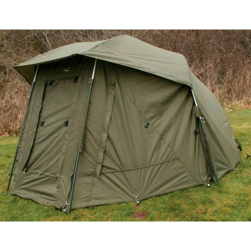 Конструкция зонтичного типа,съемная передняя панель очень легкая, стабильная алюминиевая конструкция,быстро собирается и разбирается, съемный пол (петлевая система), легко чистить, швы с двойным покрытием, высококачественный, водонепроницаемый и гидростатический внешний материал (210D PU Nylon),Время установки: 2 минуты.Регулируемые отверстия для колышков, что позволяет экспериментировать с высотой шелтера.Имеет удобный, широко отрывающийся вход, два вентиляционные отверстия с противомоскитными сетками на окнах,снабжена усиленными металлическими кольцами для колышек.Комплектуется колышками с резьбой для удобства использования. Может свободно вмещать 1 карповую раскладушку и другие необходимые мелочи.