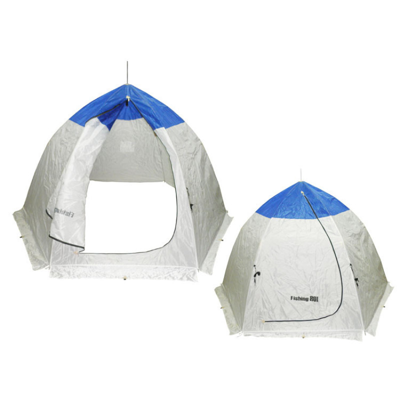 Шестиугольная зимняя палатка зонтичного типа, полуавтомат. Благодаря каркасу из 8 мм алюминиевых спиц вес всего 3,5 кг при внушительных размерах: 280х240х160 см. Материал тента ― полиэстер 150D OXFORD. Палатка двухцветная с большим входом и внутренним боковым карманом. Наличие вентиляционного клапана обеспечит приток свежего воздуха и снизит уровень образования конденсата внутри. По периметру тента ветрозащитная юбка шириной 15 см и штормовые растяжки, обеспечивающие надежную устойчивость при сильном ветре. Размеры палатки сделают комфортной вашу рыбалку, а простота и скорость установки не заставит вас мерзнуть в сильный мороз ― вся процедура займет не более 2-3-х минут.