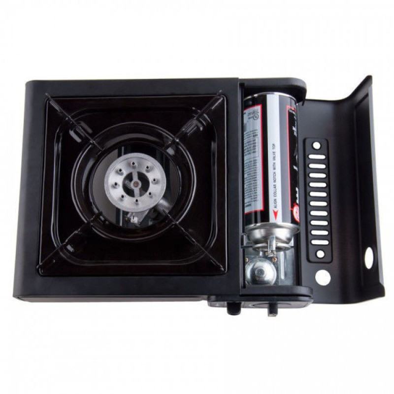 Небольшая туристическая печка на одну горелку с экономным расходом газа, одного стандартного баллона для печки, хватает на 3 часа работы в среднем режиме горения. Портативная газовая плитка оборудована системой предохранения утечки газа, автоматическим розжигом и цельно ― литой горелкой. Одного небольшого баллончика с легкостью хватает для того, что бы приготовить . Плитка укомплектована удобным кейсом для транспортировки. Когда Вы выезжаете на рыбалку на несколько дней или просто привыкли к комфорту и удобству даже на природе то Вам понадобится газовая плита. Объяснится это легко: удобная и прочная конструкция, надежные стойки для установки посуды, цельно ― литая горелка, система предохранения утечки газа, пластиковый кейсдля удобной транспортировки. Все направленно на то,чтобы процесс разогрева или приготовления пищи сделать максимально комфортным и быстрым. А дополнительно встроенная система пьезо-поджига освободит Вас от поиска спичек или зажигалки.