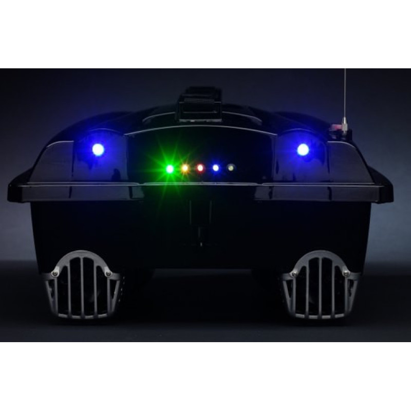 Катер оборудован системой световой сигнализации для ночного лова и индикации разряда аккумуляторов, бункером для размещения приманки и снастей, 4-х канальным пультом д/у с частотой 2.4 ГГц, аккумулятором 12VDC.