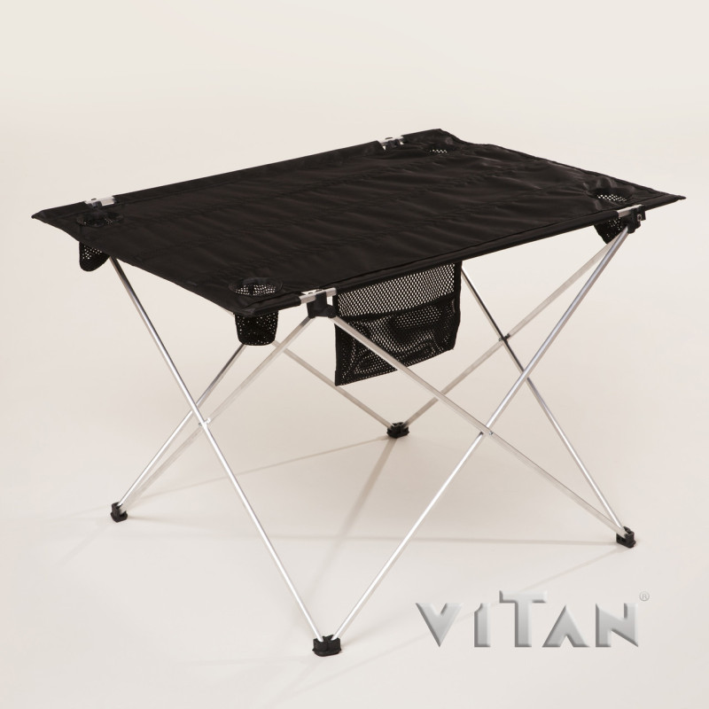 Лёгкий алюминиевый стол компактного размера. Благодаря устойчивой конструкции, выдерживает нагрузку 15 кг. Столешница выполнена из влагостойкой дизайнерской ткани. Компактно складывается в специальный чехол.