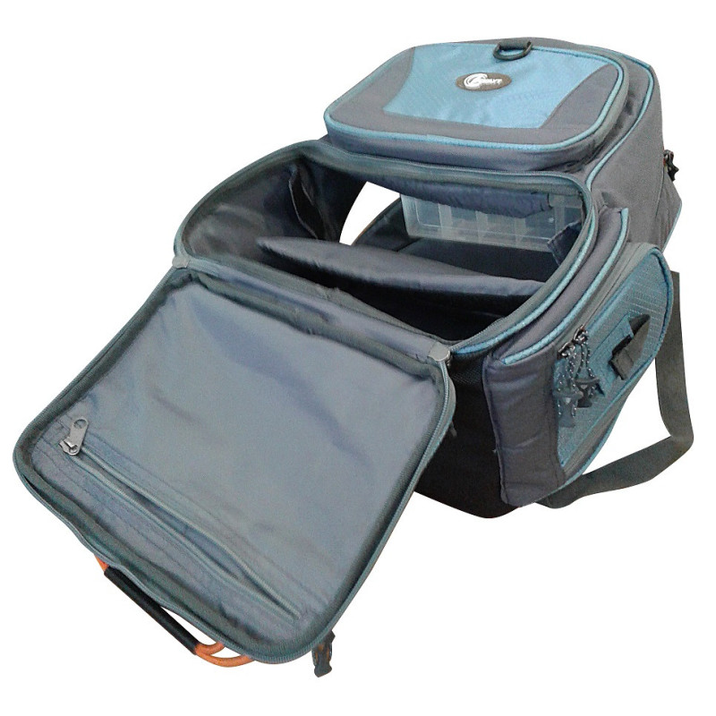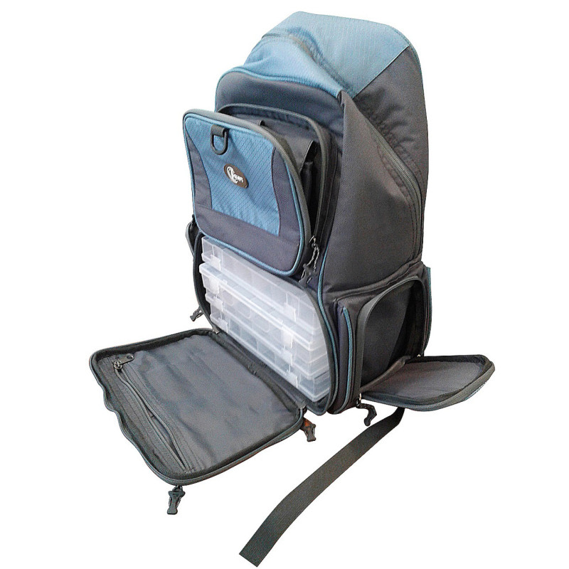 Удобный, практичный рюкзак , из нейлоновых материалов и долговечного и прочного полиэстера.Плотная-водонепроницаемая ткань.Подойдет не только для рыболовного туризма, но и повседневного использования. Два горизонтальных отдела внутри позволяют распределить вещи по Вашему усмотрению. Спинка имеет двойную основу. Ранец разделен перегородкой на отделения, первое, 20-литровое (30х32х20) и второе (19х32х19) на 11литров. Есть возможность сделать один сполшной большой рюкзак.Для размещения принадлежностей,имеется два боковых кармана два передних(2 отделения под мобильный телефон), нижний и верхний дополнительные карманы.Комплектуется 4 пластиковыми коробками размерами 27х18х4 см(с перемычками регулирующими размер ячейки) Размеры 22х50х37 см