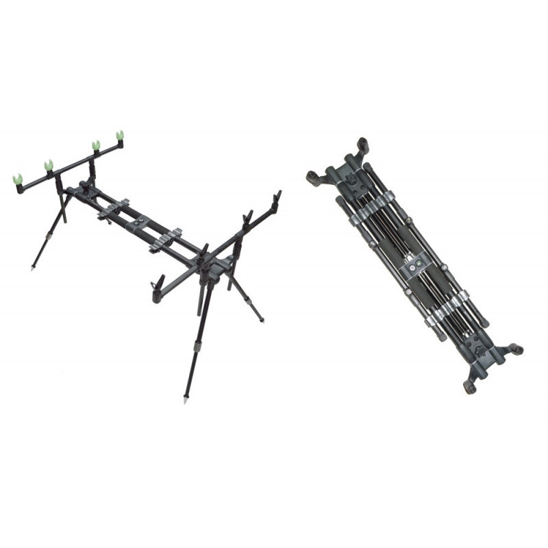 Род-под из алюминиевого сплава на 4 удилища. Крепкая продольная двойная рама с телескопической двухсторонней регулировкой.Усиленная крепёжная гарнитура всех соединений обеспечивает высокую стабильность и прочность конструкции. Раздельно регулируемые съемные ноги позволяют установить род-под в самых различных вариантах и на неровных поверхностях. В сложенном виде компактен и удобен для перевозки.Имеет встроенный термометр и компас. Благодаря применению алюминия и хорошо продуманной конструкции, вес род-пода при его надежности и мощности всего 3 кг.
