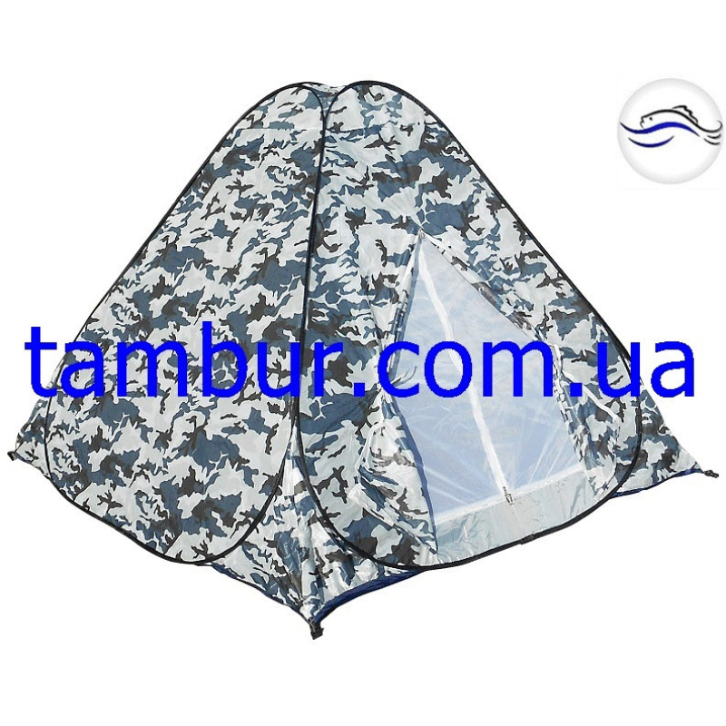 Реальные размеры 200 х 200 х 140 см. Материал тента - полиэстер 150D OXFORD. Цвет белый камуфляж,с москитной сеткой. Палатка с арочным входом и вентиляционным клапаном. По периметру дна петли для крепления палатки ко льду, обеспечивающие надежную устойчивость при сильном ветре. Процедура установки занимает не более 30 секунд.