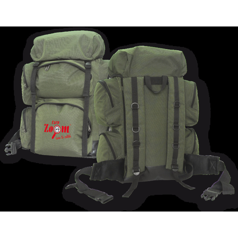 Рюкзак трансформер от венгерского производителя Carp Zoom. Сделан из непромокаемой ткани, которая не собирает конденсат. Имеет мощные и очень удобные лямки на плечи. Присутствует ортопедическая спина и ремень фиксации на пояс. Может трансформироваться в меньший размер. Объём этого рюкзака 50л.