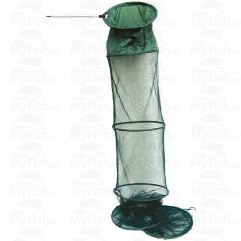Вместительные матерчатые садки со съемной стойкой для крепления их на берегу.