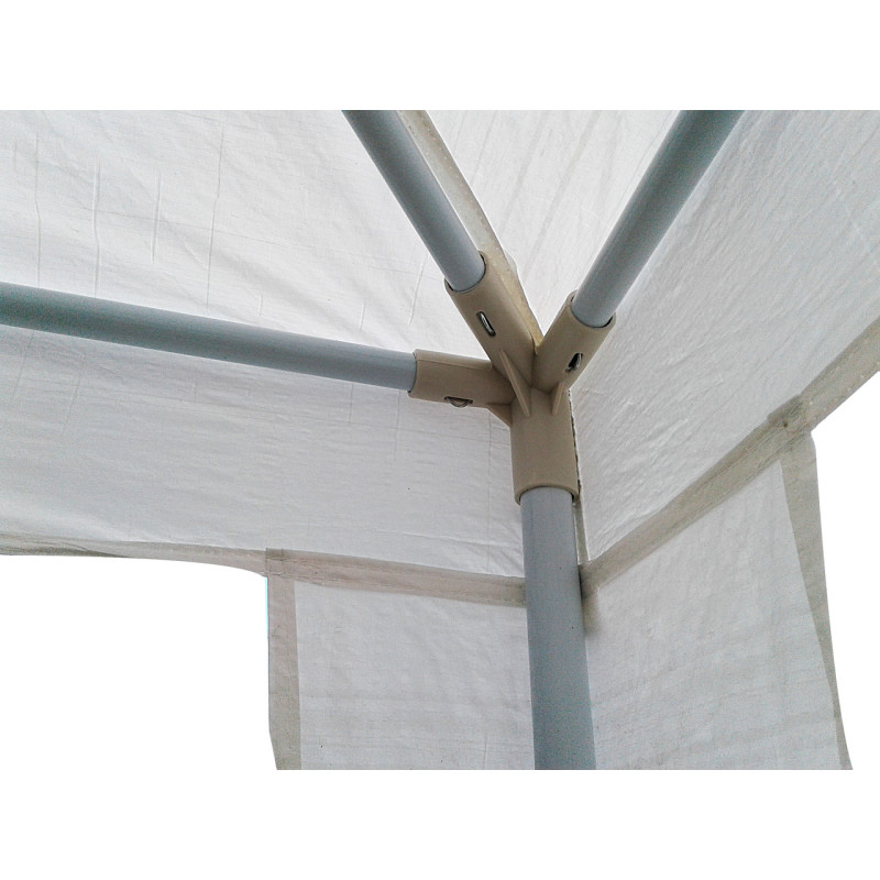 Материал: 100г/м2 водостойкий полиэтилен. Цвет-белый. Углы проклеины, для большей надежности.Каждая ножка фиксируется в землю и дополнительно растягивается веревками,для большей устойчивости.