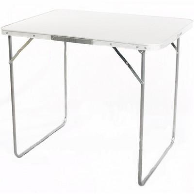 Стол изготовлен из стальной трубы. Особенности:Эргономичная конструкция не позволяет ножкам проваливаться в грунт под нагрузкой. Столешница - ДСП с ПВХ покрытием. Белого цвета!!! Нагрузка на стол - 30 кг. Размер 80х60х79см