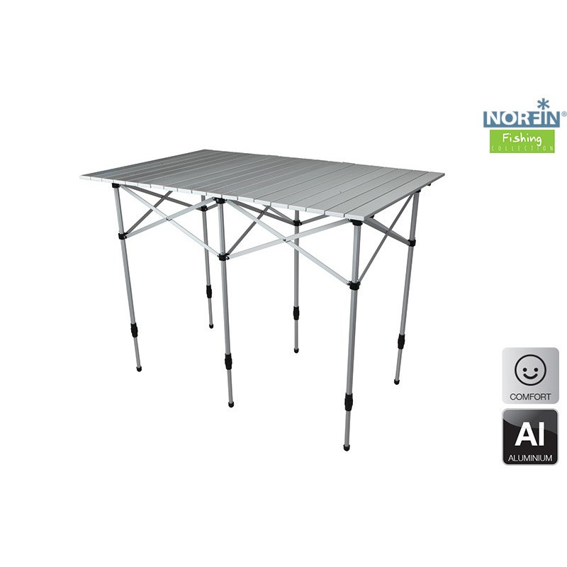 Стол складной алюминиевый. Столешница состоит из пластин алюминиевого профиля с шарнирными соединительными элементами. Столешница сворачивается в компактный рулон. Стол очень удобный при хранении и транспортировке.