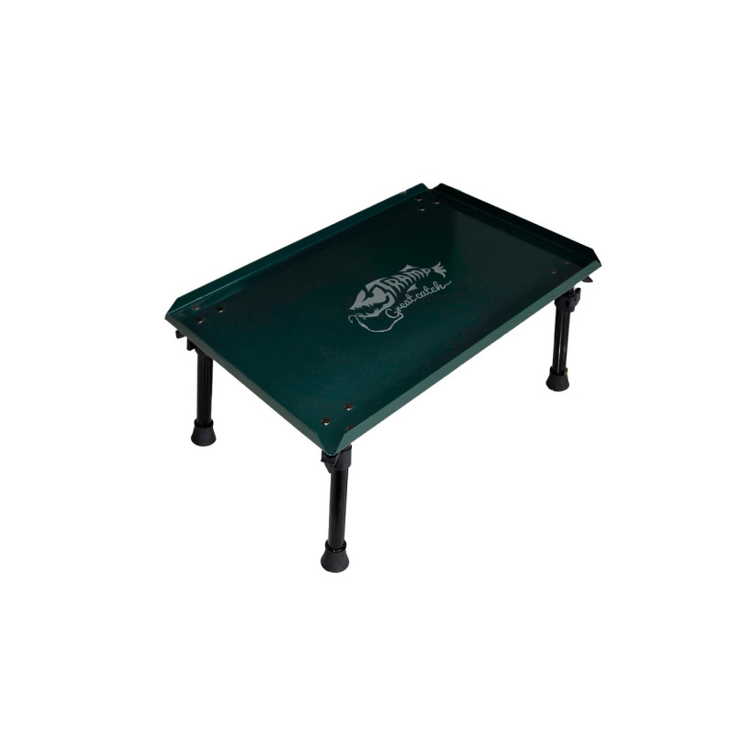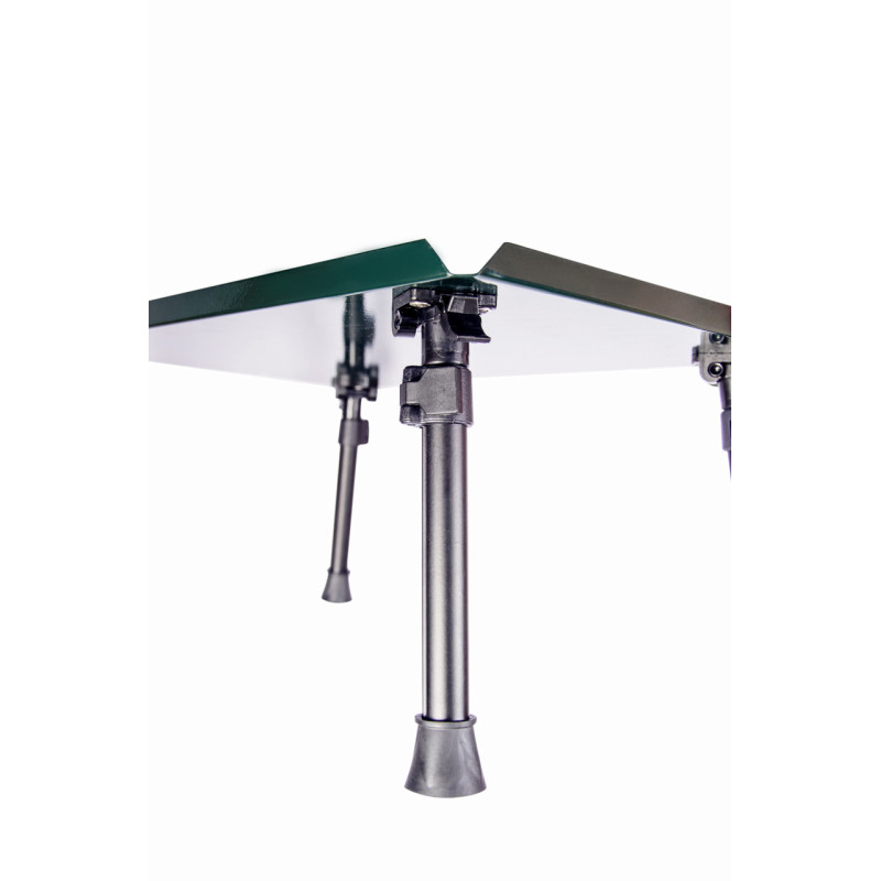 Высота телескопических ножек регулируется, благодаря чему столик можно использовать на неровной поверхности прибрежного грунта.