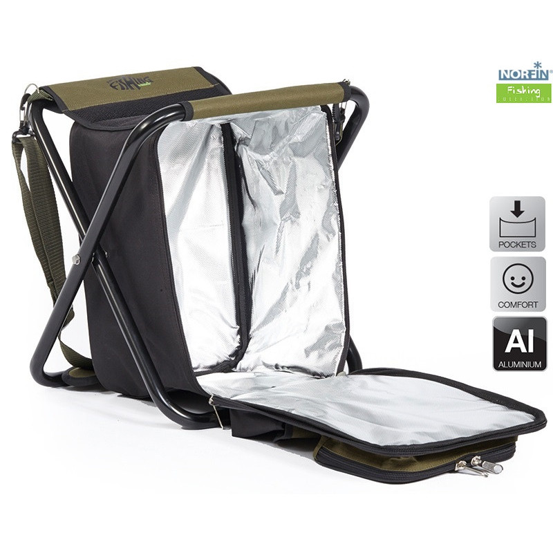 Ультралегкий стул-сумка с алюминиевым каркасом и фольгированным термослоем. Наплечный ремень регулируемый по длине. Сумка оснащена 4-мя боковыми карманами.