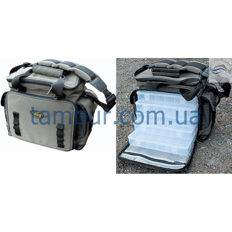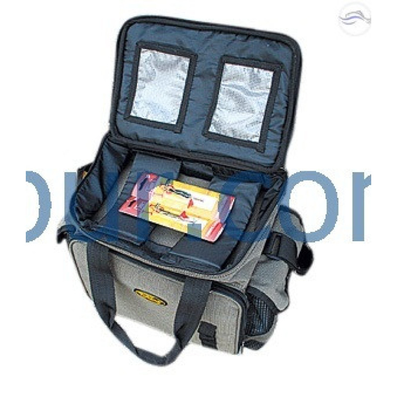 В комплекте пять пластиковых коробок, размером 28х18х4 см, с многочисленными отделениями. Две коробки, размерами 20х13х4 см, с многочисленными отделениями. Верхнее отделение, удобное для перевозки катушек. Двойная ручка и мягкий, регулируемый по длине, наплечный ремень.