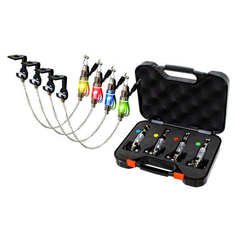 Набор свингеров на цепочке «Fishing ROI» SW02-4 применяются как натяжитель лески в сочетании с электронным сигнализатором поклевки. Дополняют его функциональность и позволяют обеспечить качественный контакт лески с роликом сигнализатора, помогая ему сработать в случае ослабления натяжения лески при движении клюнувшей рыбы в сторону берега. Каждый свингер комплектуется проводом со штекером «ExtraJack»–2.5 мм. для подключения к электронному сигнализатору, благодаря чему возможна дополнительная световая индикация, сигнализирующая о поклевке при помощи встроенного светодиода LED. На леске свингер защелкивается с помощью крепления с металлическими шариками-фиксаторами с возможностью регулировки зазора. В наборе 4 свингера разного цвета - жёлтый, красный, синий и зелёный, подойдут по креплению к любой стойке или род-поду. Поставляются во влагоустойчивом компактном жёстком кейсе с отдельными слотами для хранения каждого свингера, что обеспечивает защиту от ударов и удобство при транспортировке.