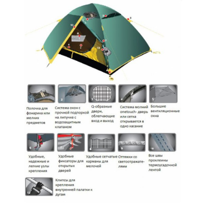 Внешний тент имеет пропитку, задерживающую распространение огня